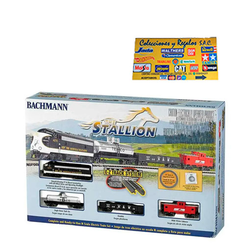 Galopando por los raíles, The Stallion exhibe sus elegantes líneas mientras corre hacia la línea de meta. ¡Este enérgico corcel será el campeón de tu establo en escala N! Un EMD F7A tira de una góndola, un vagón cisterna y un furgón de cola con visión amplia alrededor de un círculo de 24″ de rieles EZ con ajuste a presión. Incluye un paquete de energía, un controlador de velocidad e instrucciones.